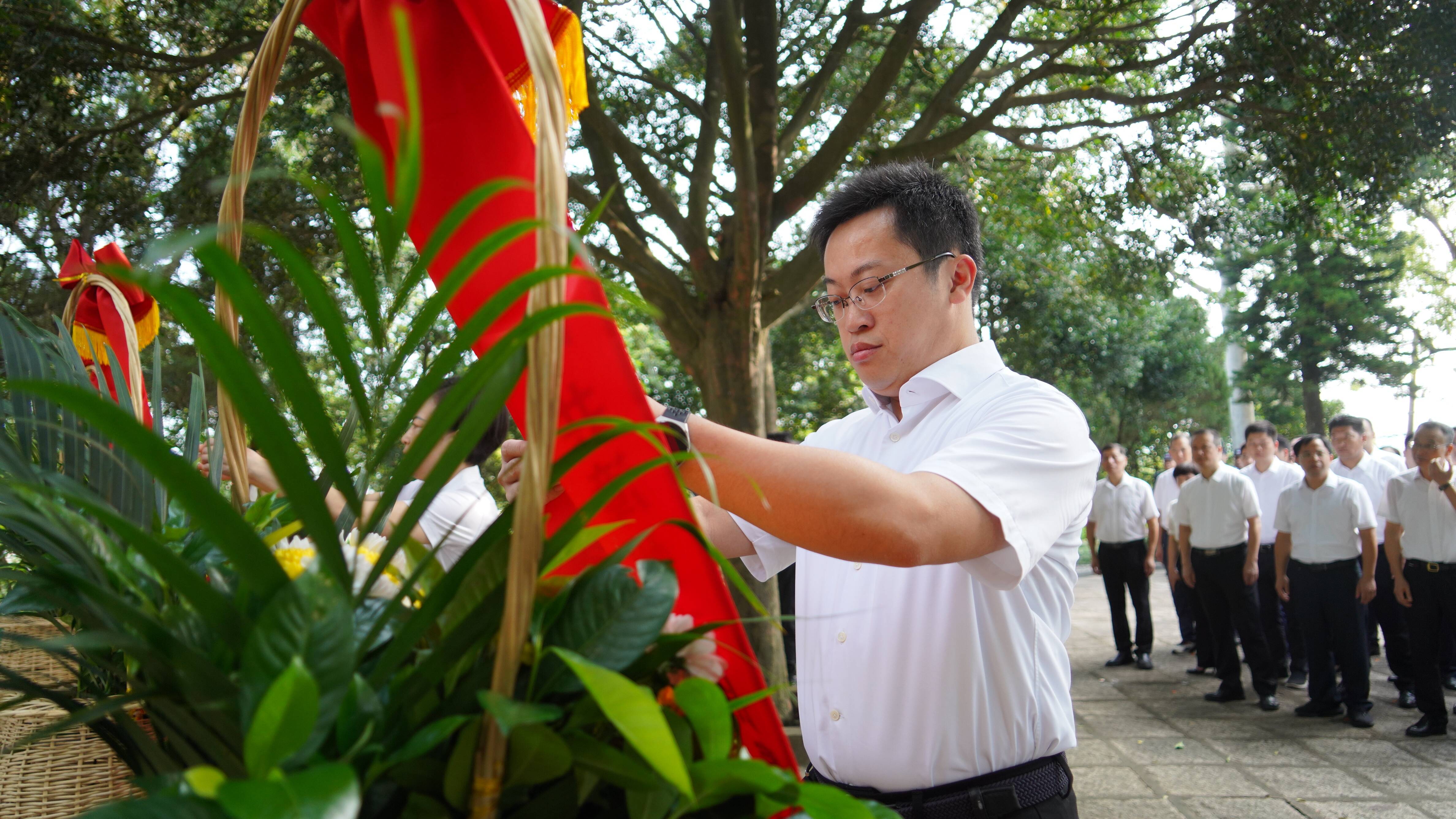 尤宇川、吴子毅、陈贵芬、叶水山等区领导神情庄重,迈步上前,仔细整理花篮缎带。接着,大家缓步慢行,凝神瞻仰革命烈士纪念碑、革命烈士墓,向革命烈士致以崇高敬意。