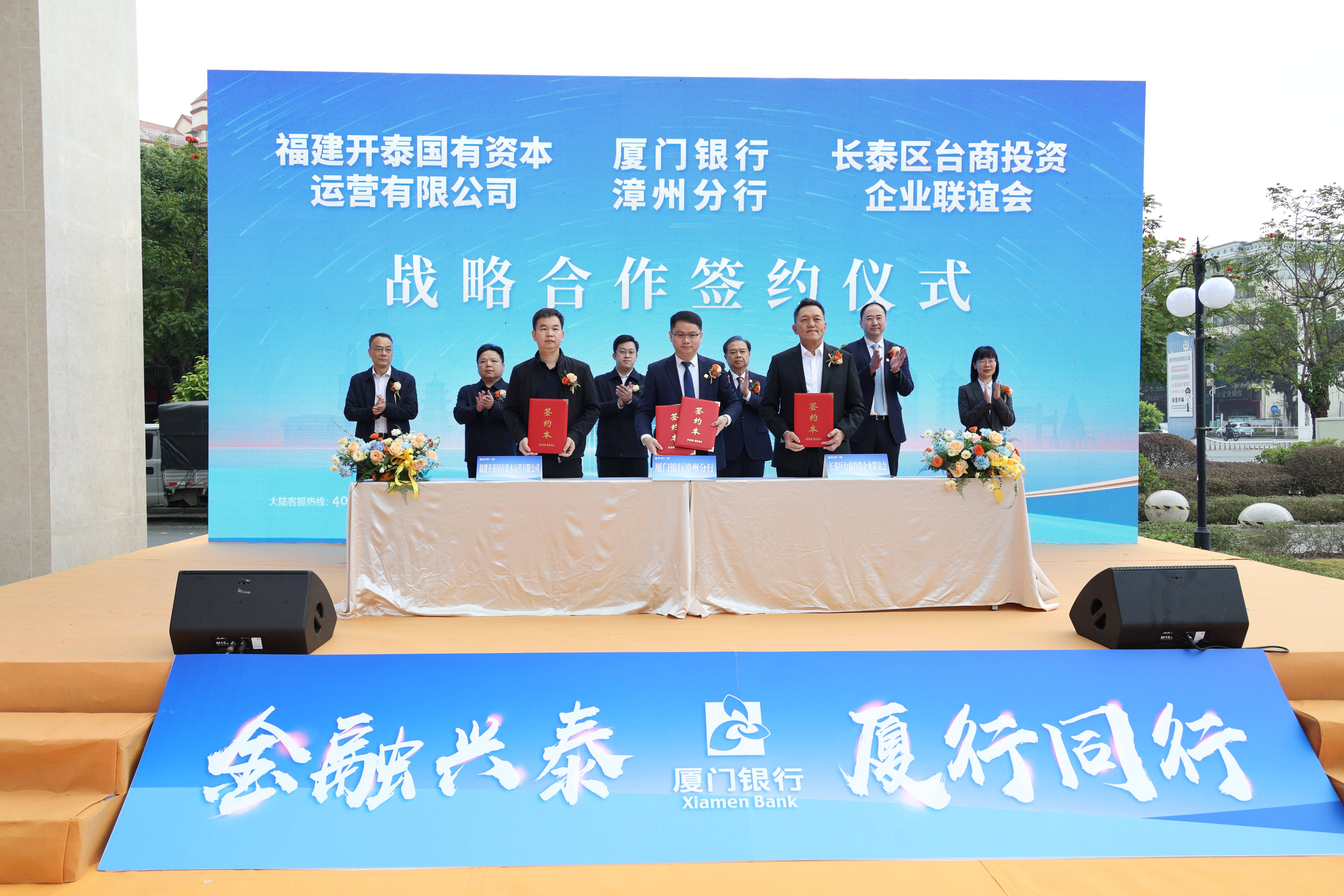 随后,在与会领导嘉宾的见证下,厦门银行漳州分行分别与漳州市长泰区人民政府、福建开泰国有资本运营有限公司、长泰区台商投资企业联谊会签订战略合作签约仪式。