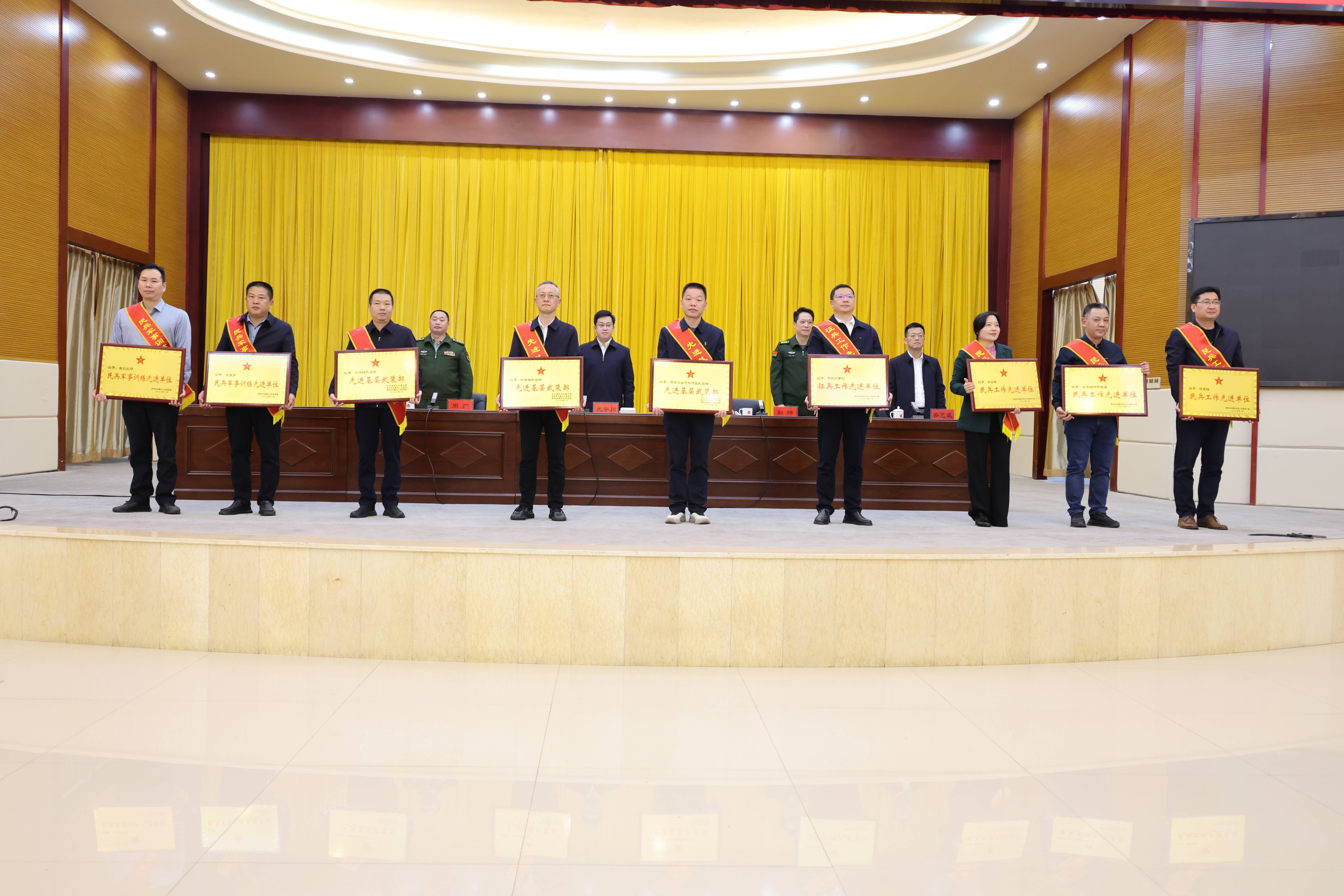 会议传达学习上级有关会议精神,宣读了2025年度党管武装工作表扬通报,并为先进单位和先进个人代表颁奖。各乡镇(场、区、办事处)人民武装部政治教导员作了书面述职。