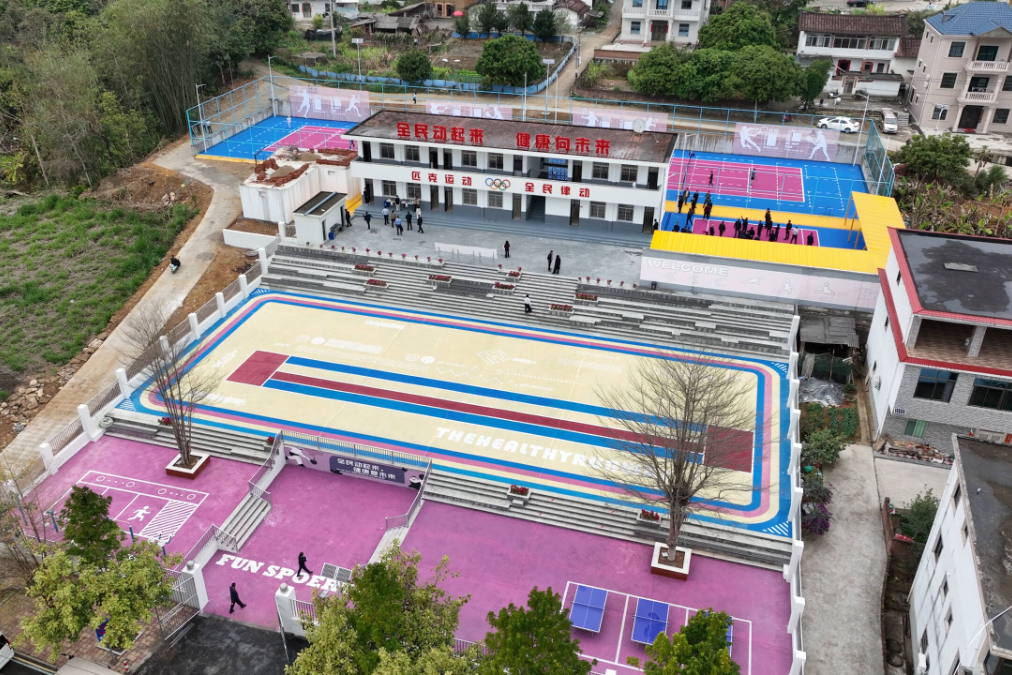 检查组察看坂里乡高层村全民健身运动项目