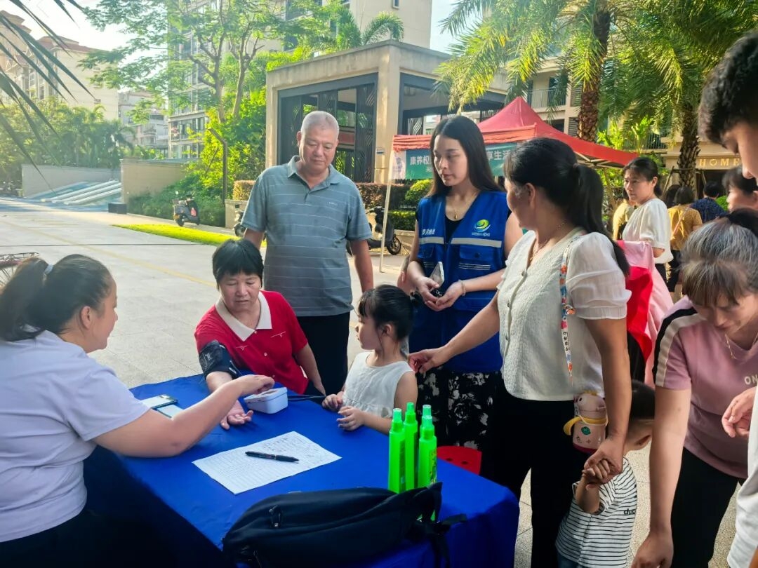 文昌社区携手碧桂园文澜府物业、牙哩口腔、中国移动、社区文娱志愿服务队等开展“迎金秋·庆华诞”社企联动进小区送服务活动,同时做好柔力球运动宣传推广,为邻里同乐添活力。
