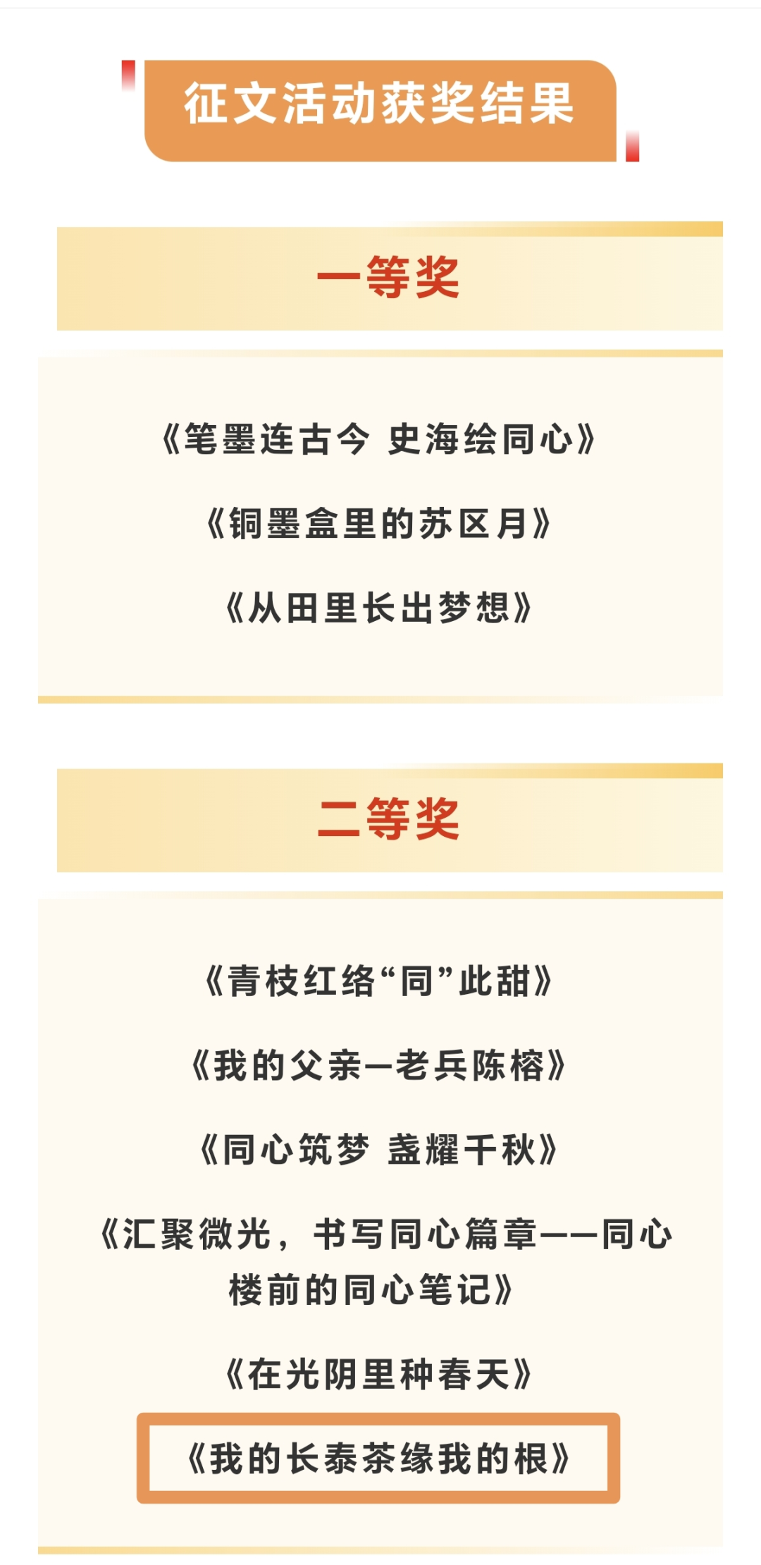 近日,由福建省委统战部主办、福建侨报社承办的第四届“我的同心福缘”短视频大赛暨征文活动结果出炉,由长泰区委统战部选送的作品《我的长泰茶缘我的根》获主题征文作品二等奖。