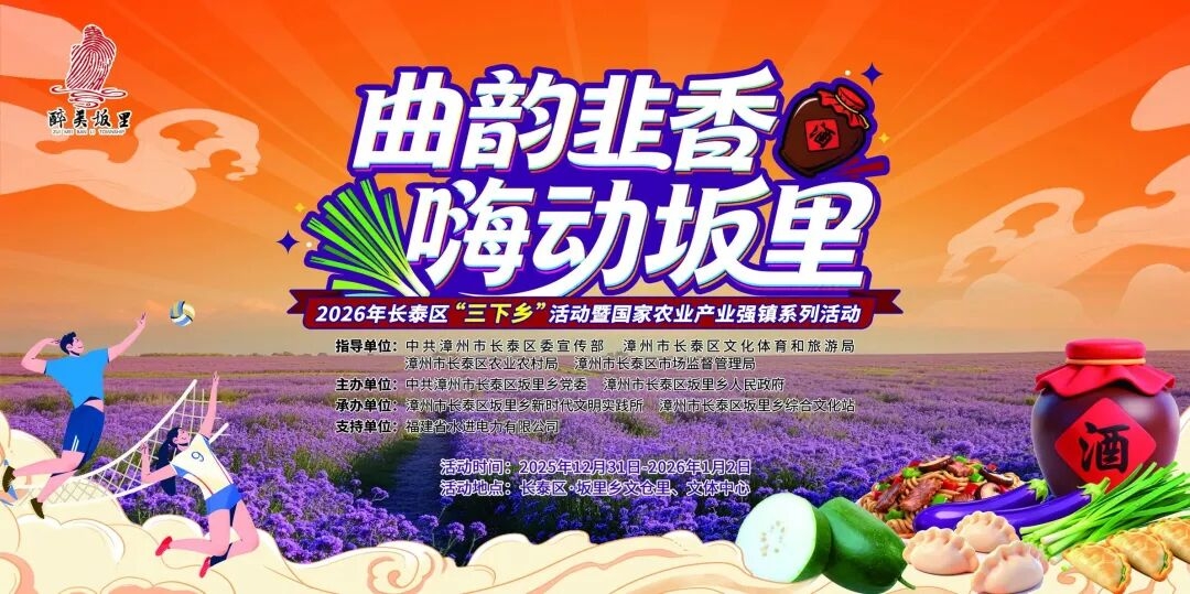 迎着元旦晨光,奔赴长泰坂里乡,赴一场“曲韵韭香·嗨动坂里”的年度盛会(活动时间:2025年12月31日-2026年1月2日,主场地:坂里乡文仓里。作为国家农业产业强镇的特色节会,这里以“政府搭台、产业唱戏、群众主体、数字赋能”为核心,打造了“食、游、购、娱、体、展、演”多元融合的消费新场景。