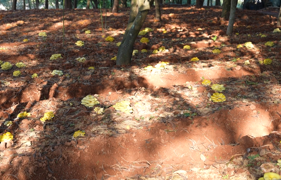 来到示范基地内,只见菌包在林木荫蔽下有序分布,据负责人介绍,每个菌包可循环采收3至5茬,目前已进入采收阶段。