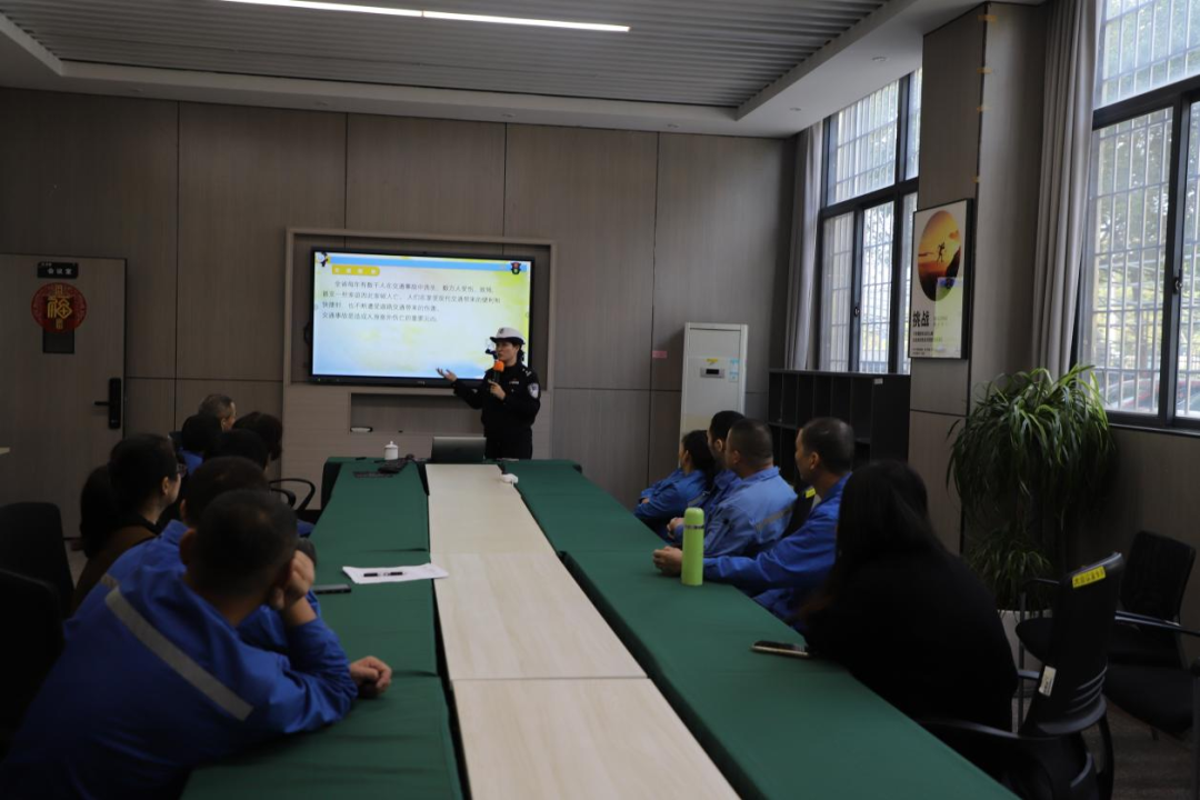 春运期间,长泰交警大队走进津城城市服务有限公司,为一线环卫工人送上交通安全课。针对环卫工人凌晨、夜间作业的特殊性,宣传民警通过PPT课件讲解、播放警示教育片、发放宣传资料等形式,用通俗易懂的语言讲解道路交通安全知识,重点提醒大家上岗必须规范穿着反光背心,警惕“鬼探头”危险行为,不随意横穿马路、不闯红灯、不逆行、不抢道。同时叮嘱环卫工人骑行电动自行车、摩托车出行务必戴好安全头盔,严格遵守交通法规,时刻注意自身安全。民警还与企业负责人交流,督促企业落实安全主体责任,加强日常安全教育和作业管理,共同守护一线作业人员平安。