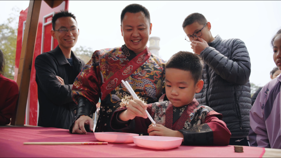 从正月初一到初七,长泰文庙的新春庙会持续火热。首届“长泰新春庙会传统文化寻踪暨钱庄晋升记”活动中,游客们使用现场购买的铜币、银票,在文庙内边运动边打卡。孩子们手持铜币在棂星门前奔跑,在状元桥上穿梭,参与投壶、博饼、蒙眼猜牌、快夹珠珠等传统游戏,体验香囊制作、漆扇制作等非遗手作。每完成一个任务,便能在“钱庄”盖上一个印章。