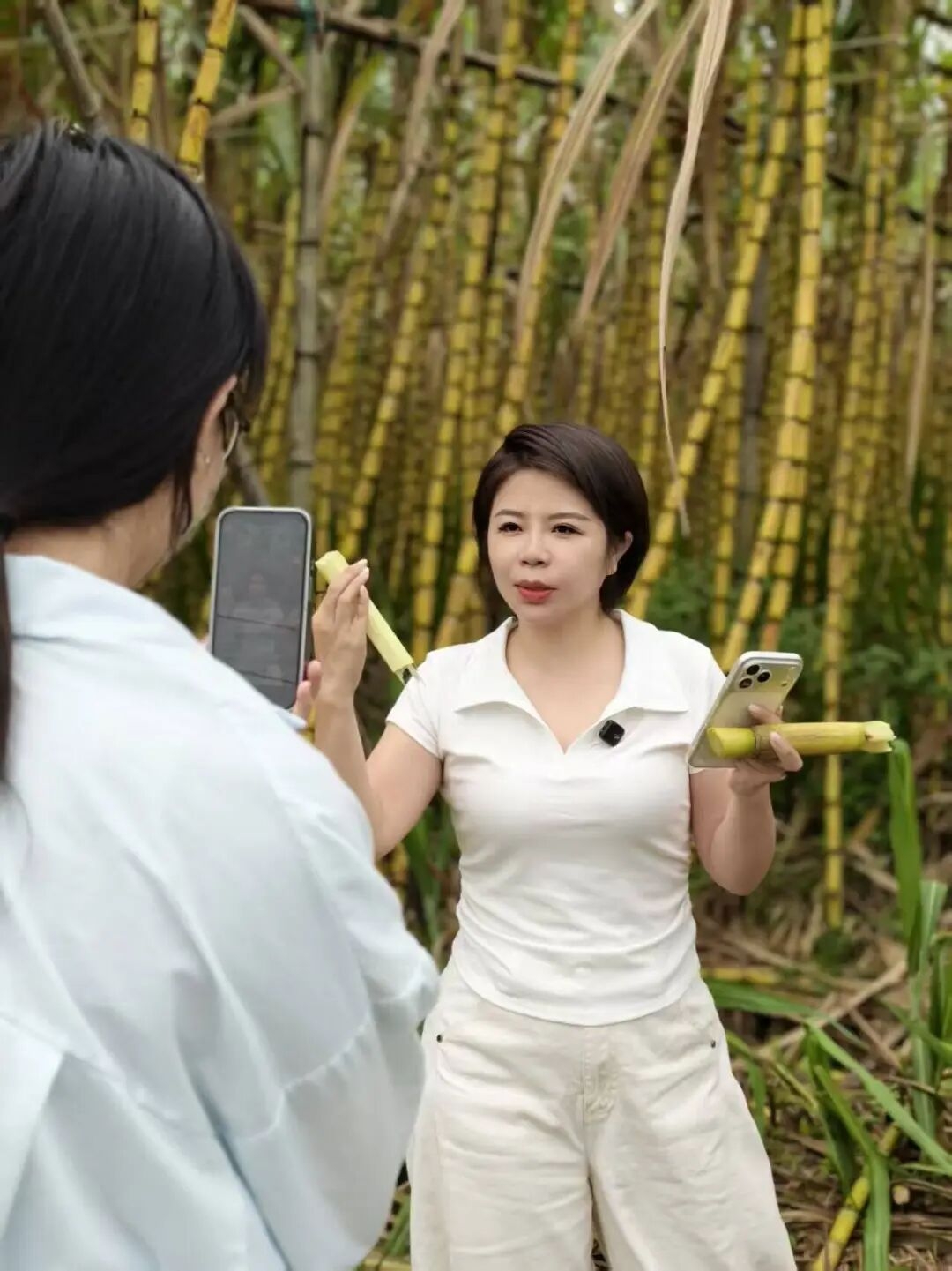 区委网信办组织自媒体达人与融媒体主播轮番走进陈巷镇美彭村、石室村等甘蔗主产区,将助农直播间搬到了田间地头,聚焦“沉浸式砍蔗”“甘蔗清甜吃播”等场景,引导游客体验采摘乐趣,充分发挥媒体流量裂变优势。