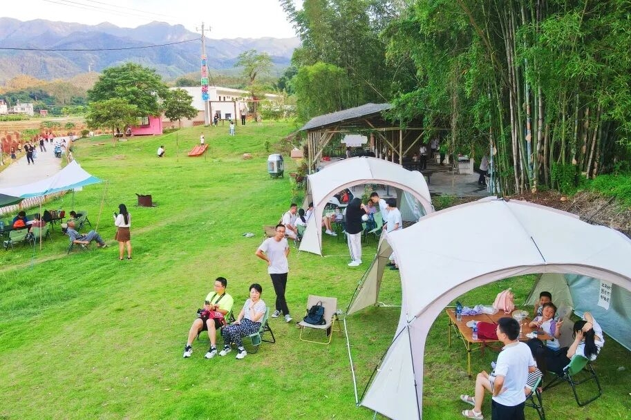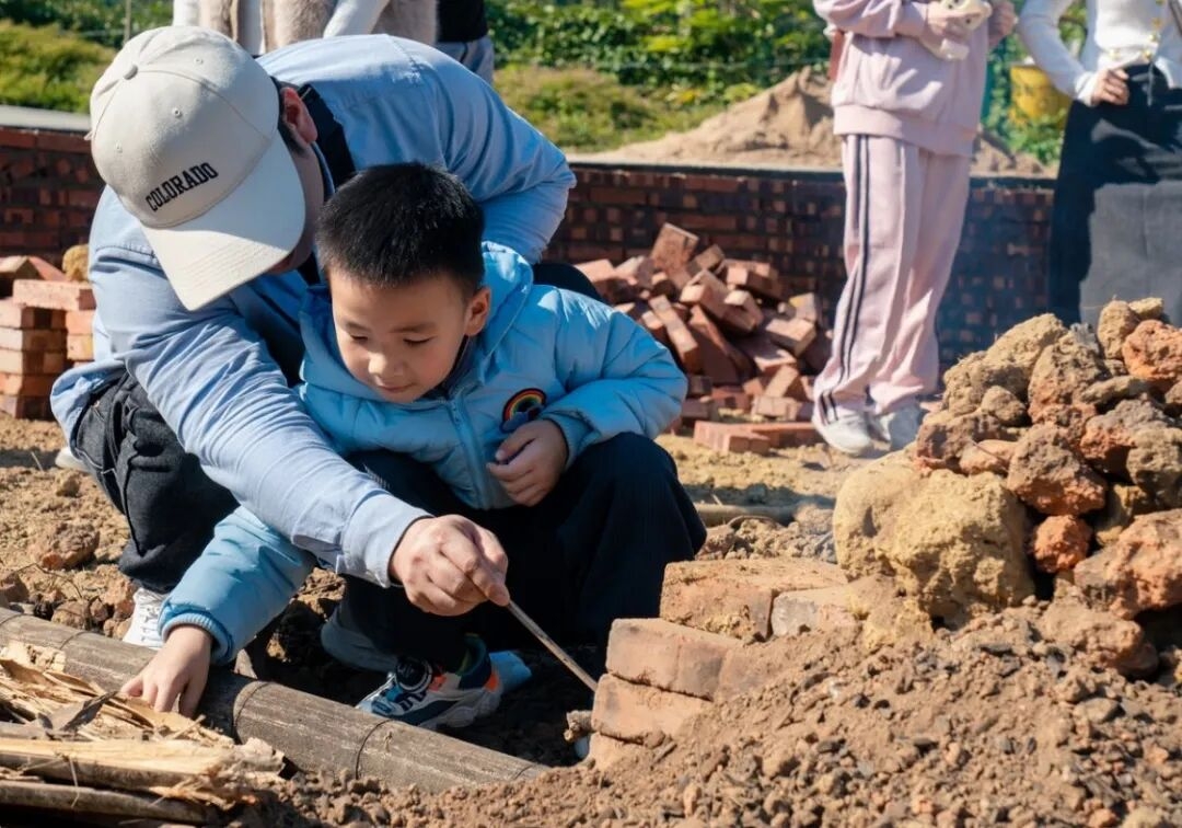 晨起抵达伍色竹塔。这里融合了生态田园、农耕体验与精品民宿。孩子们可以在“小小农夫”体验营里插秧,大人们则围炉煮茶、烤土窑红薯,在泥土与炊烟中找回最简单的乡野乐趣。