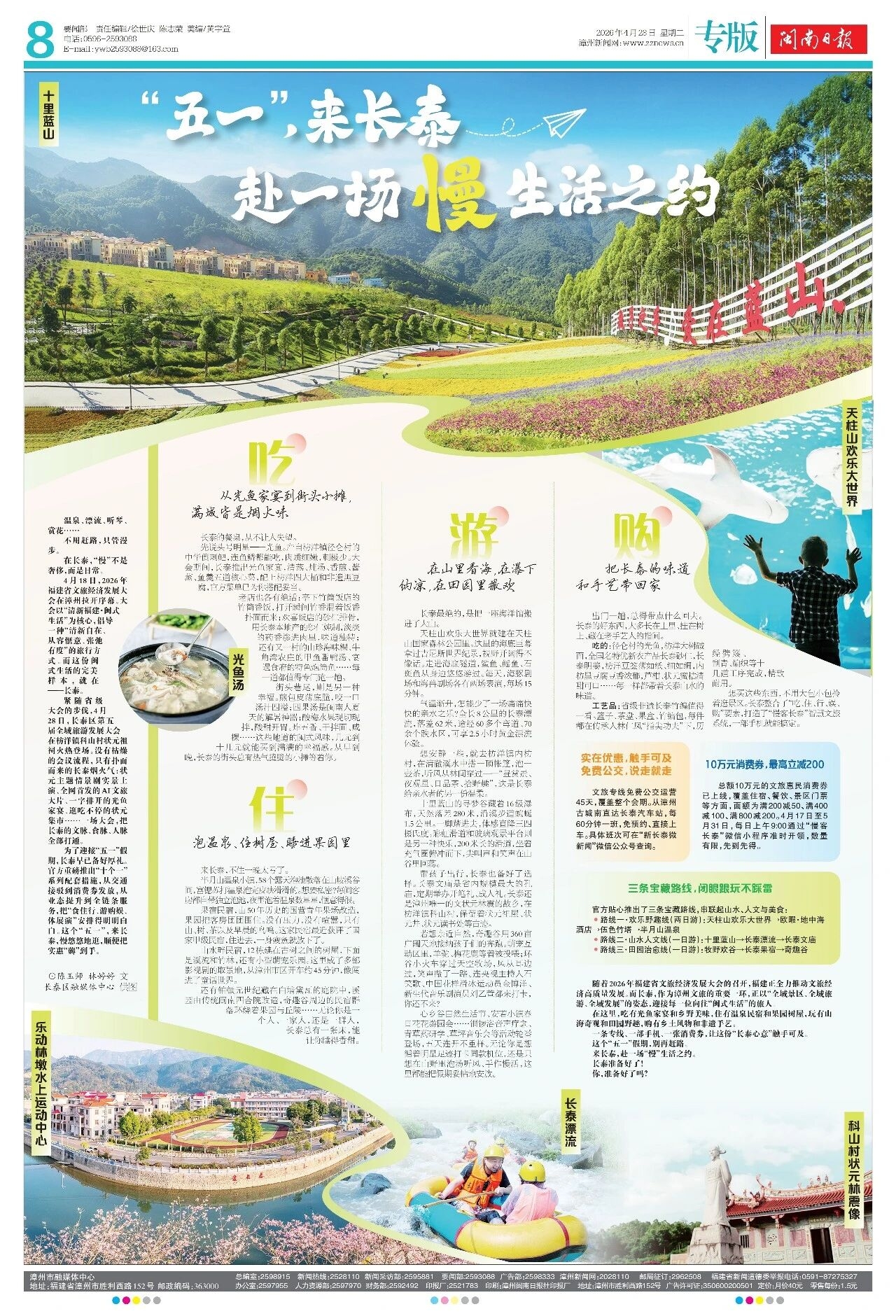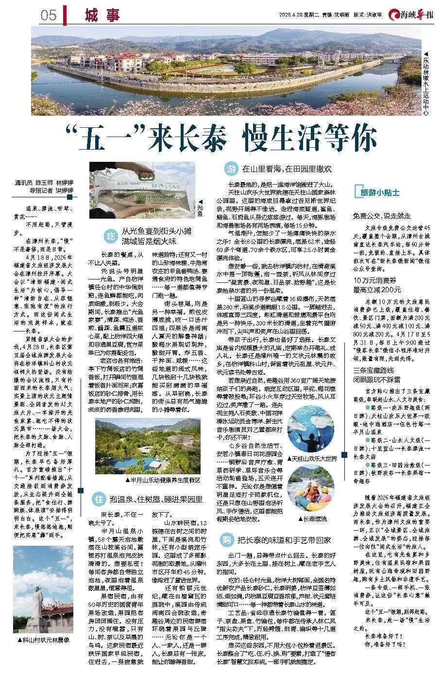 为了迎接五一假期,长泰早已备好厚礼。官方重磅推出“十个一”系列配套措施,从交通接驳到消费券发放,从业态提升到全链条服务,把“食住行、游购娱、体展演”安排得明明白白。这个五一,来长泰,慢悠悠地逛,顺便把实惠“薅”到手。