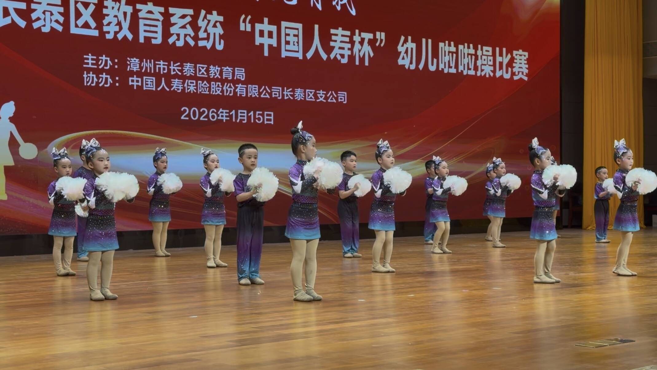 为丰富幼儿课余文化生活,促进幼儿身心健康发展,昨天,2026年漳州市长泰区教育系统“中国人寿杯”幼儿啦啦操比赛在长泰一中“985大礼堂”精彩开赛,来自全区各幼儿园的萌娃们齐聚一堂,用活力舞姿绽放童年光彩。