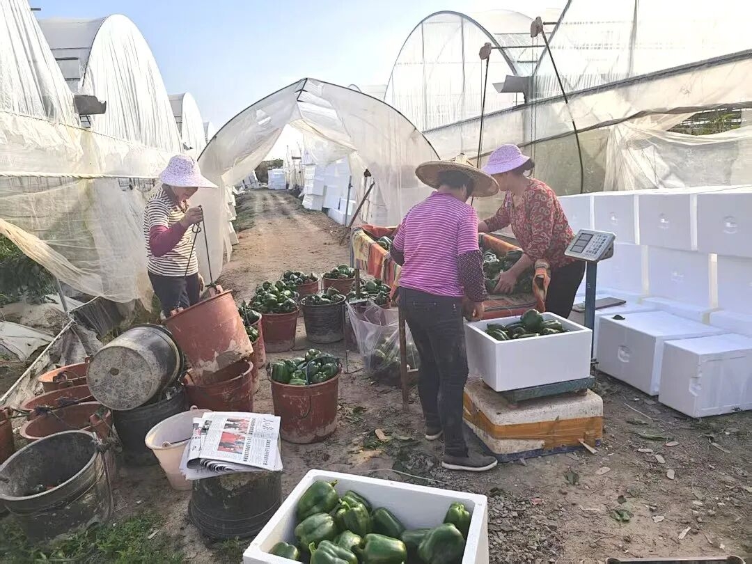 沿着雪美洋田园风光路一路走来,各类应季蔬菜长势喜人,农户们穿梭其间,抓紧采收。妙韩蔬果合作社的基地里,农户们正为刚采摘的圆椒装箱。合作社负责人说,该片区种植了30亩圆椒,通过科学水肥管理,每亩能收7000斤,价格达到2.5元,主要销往厦门同安的蔬菜批发市场。