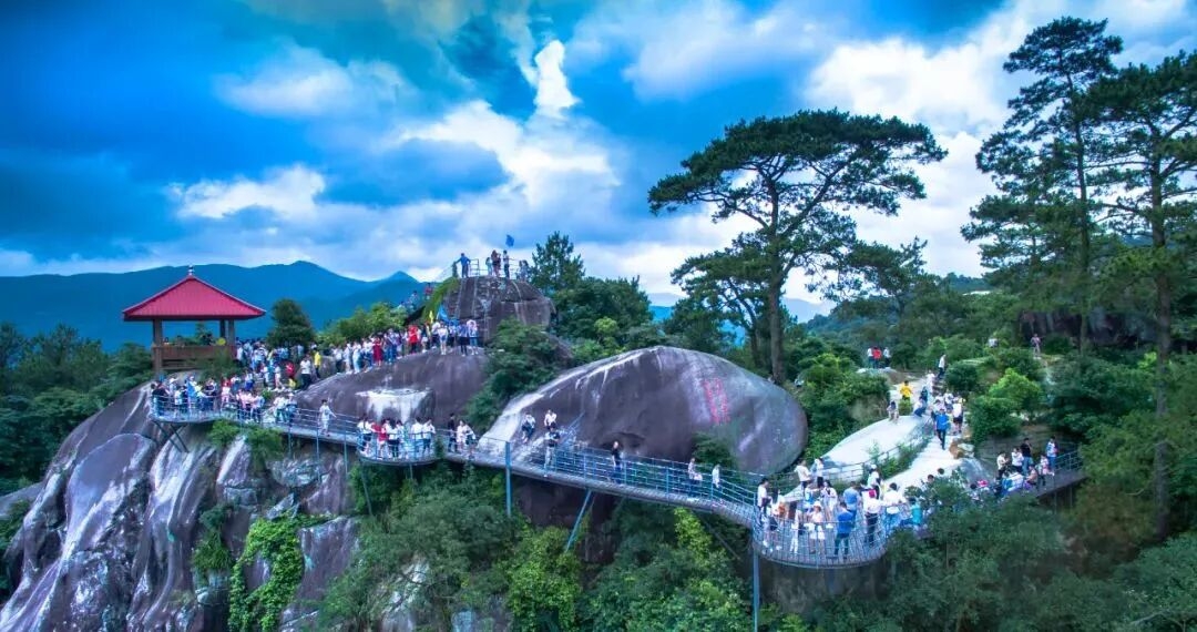 前往鼓鸣岩,这里山水相依,风光旖旎。漫步山间步道,呼吸清新空气,聆听山间鸟鸣,感受大自然的馈赠,登顶远眺,将山水风光尽收眼底,祈愿新的一年平安喜乐、万事顺意。鼓鸣岩的奇山异石、潺潺溪流,都透着原生态的韵味,你可以在这里放慢脚步,感受山间的宁静与祥和,舒缓前几日游玩的疲惫,为这次春节长泰之行画上圆满而有意义的句号。