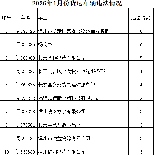 截至2026年1月31日,我区共有3家重点运输企业很好地履行了企业安全管理责任,零违法、零事故企业。表扬