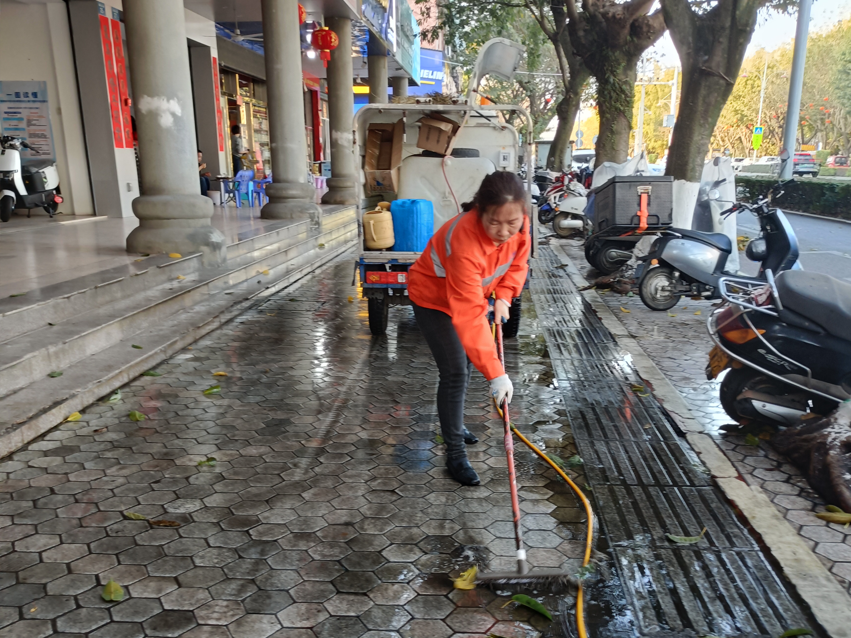 针对春节期间人流量大、市容乱象易反弹的特点,执法大队坚持“疏堵结合、柔性执法”的原则,通过“定人定岗+机动巡查”相结合模式,重点整治占道经营、乱堆乱放、电动自行车乱停放等市容乱象。春节以来,共出动执法人员116人次,共规范占道经营、乱晾晒等问题174个,清理僵尸车23辆,规范非机动车停放700余辆次,确保市容秩序井然有序。