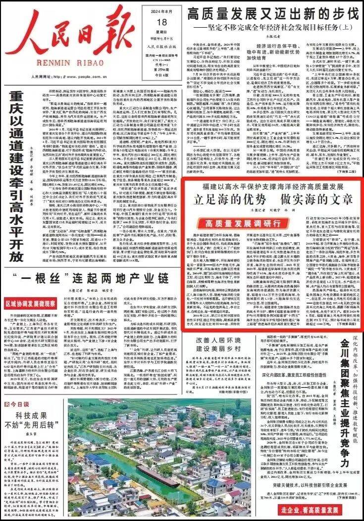 8月18日,《人民日报》头版“高质量发展调研行”栏目刊发通讯《立足海的优势 做实海的文章》,聚焦福建省以高水平保护支撑海洋经济高质量发展,坚定不移走生态建设与增收致富有机结合的绿色发展之路。