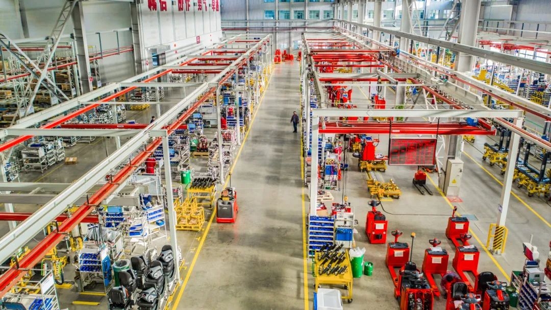 林德叉车现代化车间,敞亮、整洁、安静,生产作业有条不紊