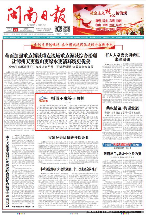 抓与不抓大不相同,抓而不准等于白抓。昨日,市委主要领导在全市生态环境保护工作推进会上强调了精准抓工作的重要性。这就要求我们要坚持问题导向,敢抓善抓、精准施策,真正把工作落实到位。