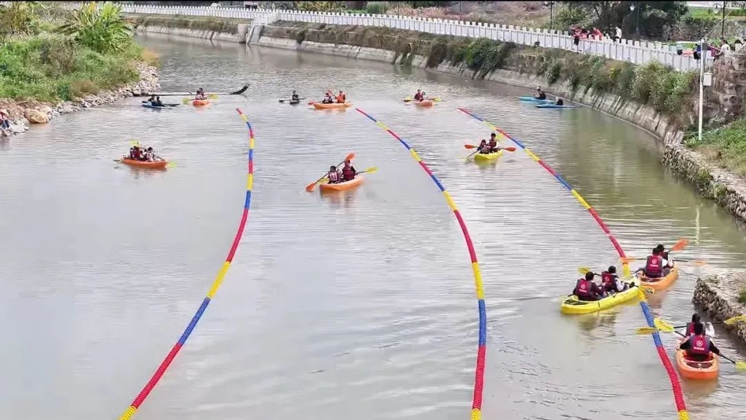 红蓝相间的码头、河道两侧迎风飘扬的彩旗、五颜六色的桨板与皮艇,在碧水蓝天的映衬下,让“花式玩水”激情出圈......