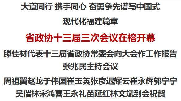 凝心聚力担重任,奋楫笃行建新功。12日上午,省政协十三届三次会议在福州开幕。