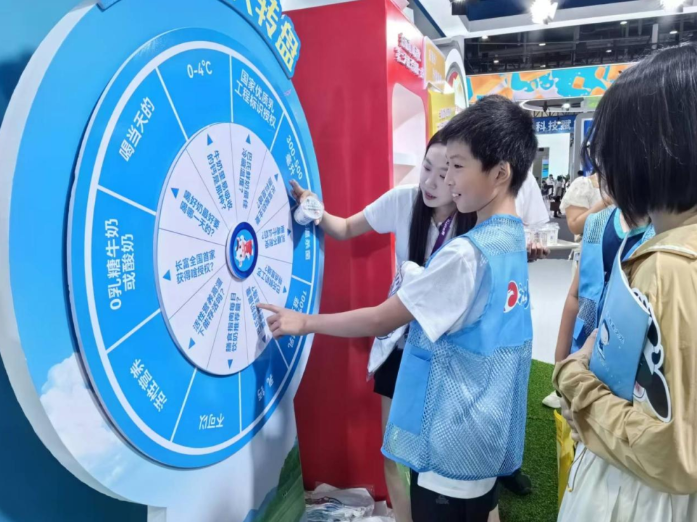 参观研学学生在长富乳业的展区内参与科普互动