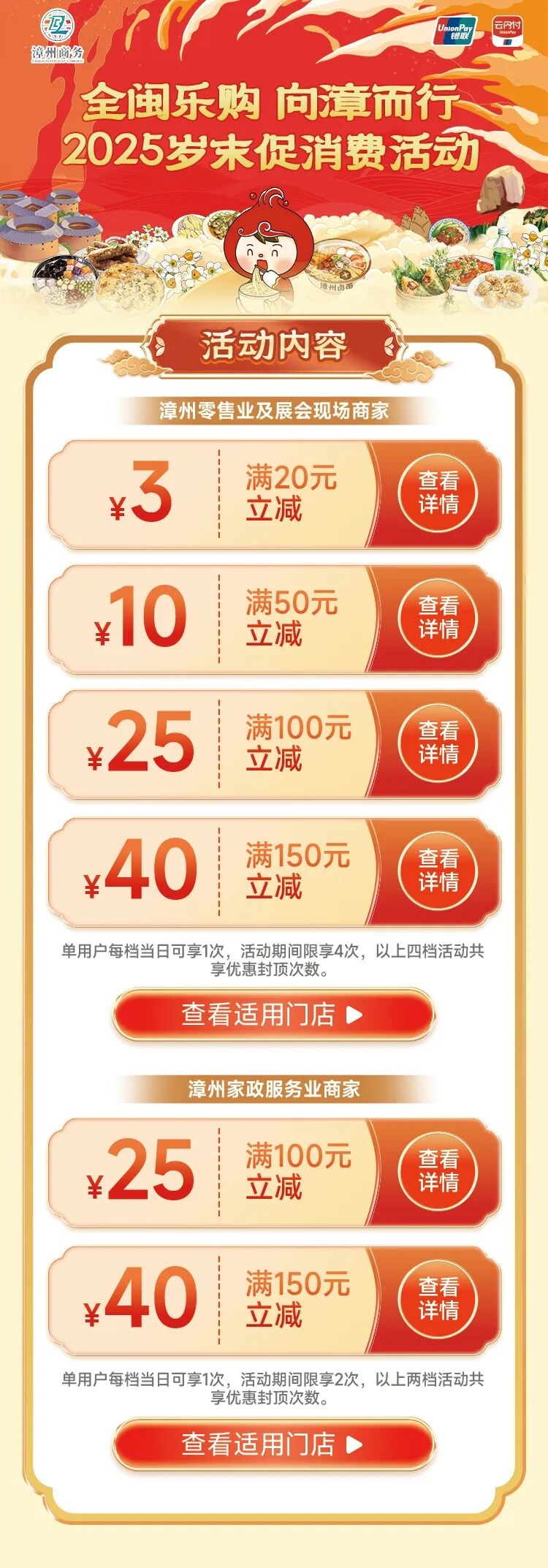 【注】用户消费前,须打开手机定位功能,选择“漳州市”,将云闪付APP更新到最新版本,并允许获取位置信息。本次活动只允许定位在漳州市的云闪付用户参与。