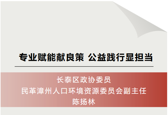 他们是参政议政的中坚力量,是民生福祉的忠实守护者;他们立足本职深耕不辍,履职尽责初心如磐,在推动区域高质量发展的征程中主动作为、勇担使命。在长泰区“两会”即将召开之际,长泰区融媒体中心推出《代表委员风采》专题系列报道,今日让我们走近区政协民主党派委员小组召集人陈扬林,感受他以专业赋能履职、用爱心温暖民生的责任担当。